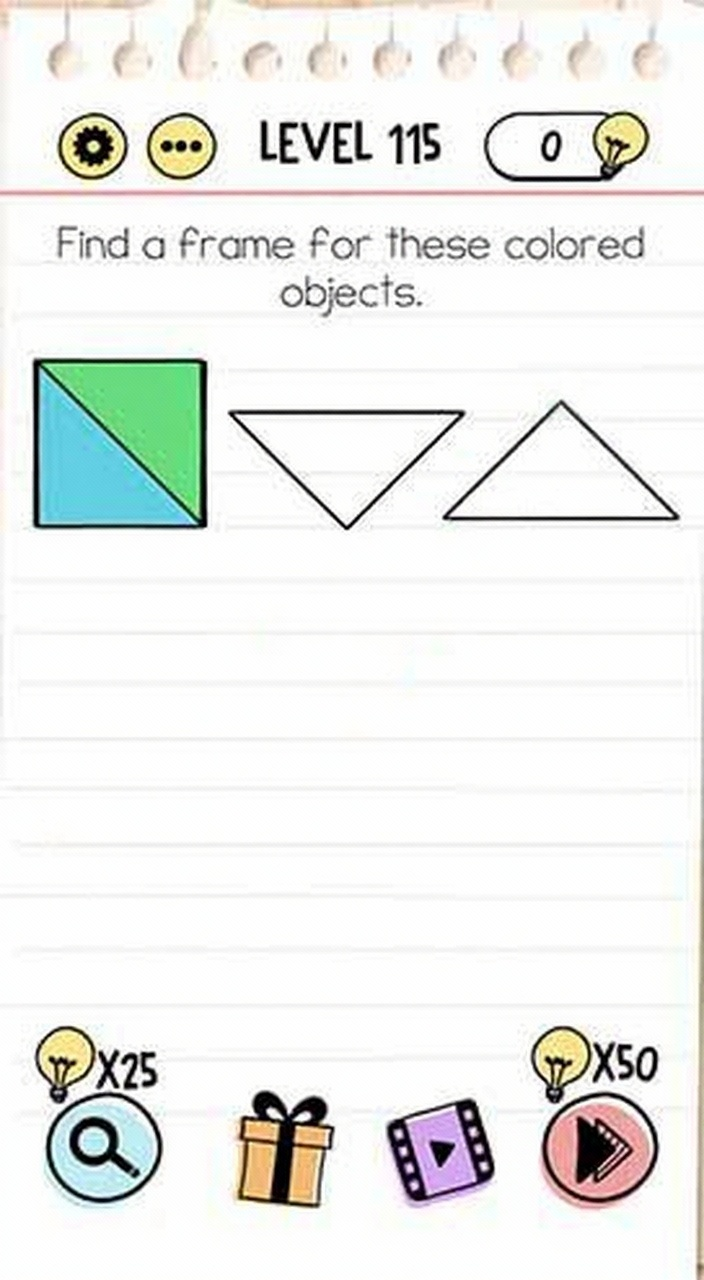 Put the red square and two colored triangles together into the blank square. They will fit inside.