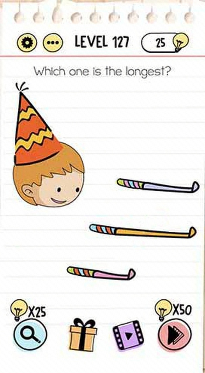 Move the kid’s face to all of the party blowers and after choose longest one.