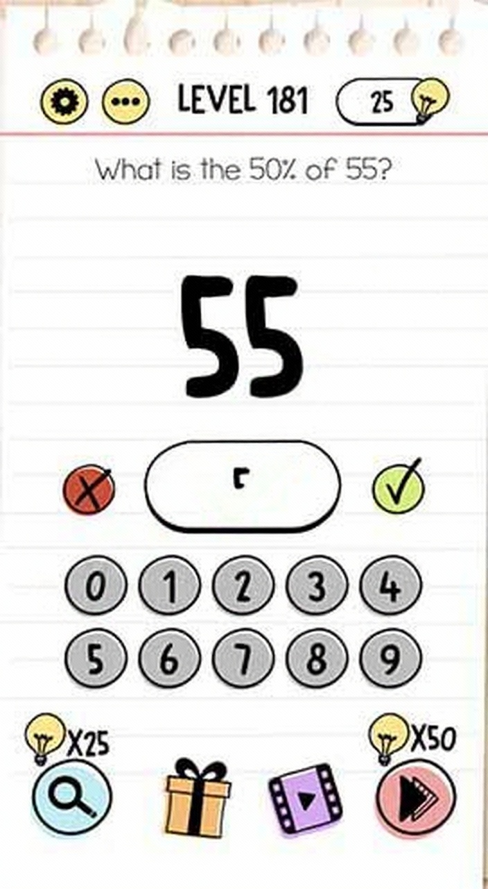 Half of the number “55” is “5”.