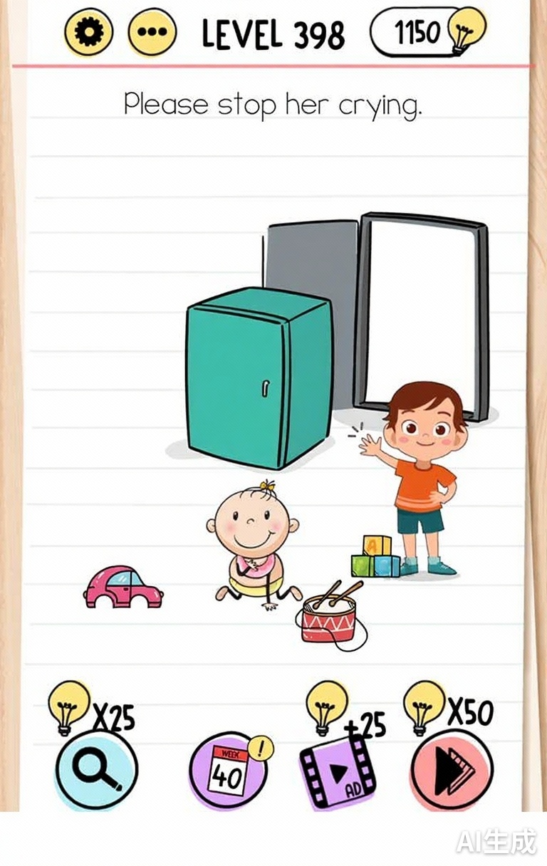 This level challenges your problem-solving skills with a unique puzzle. Take your time to observe all elements on the screen. Sometimes the solution requires thinking outside the box or interacting with objects in unexpected ways. If you're stuck, try different approaches and don't be afraid to experiment with the interface.