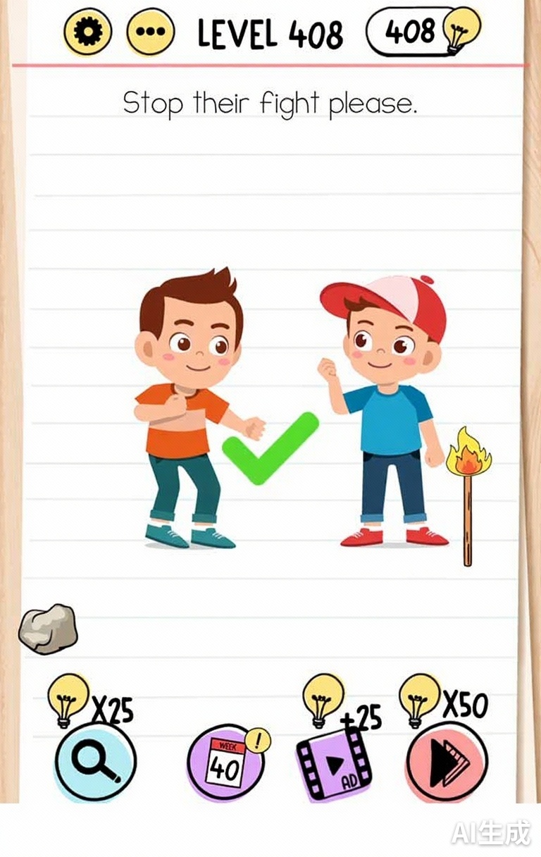 This level challenges your problem-solving skills with a unique puzzle. Take your time to observe all elements on the screen. Sometimes the solution requires thinking outside the box or interacting with objects in unexpected ways. If you're stuck, try different approaches and don't be afraid to experiment with the interface.