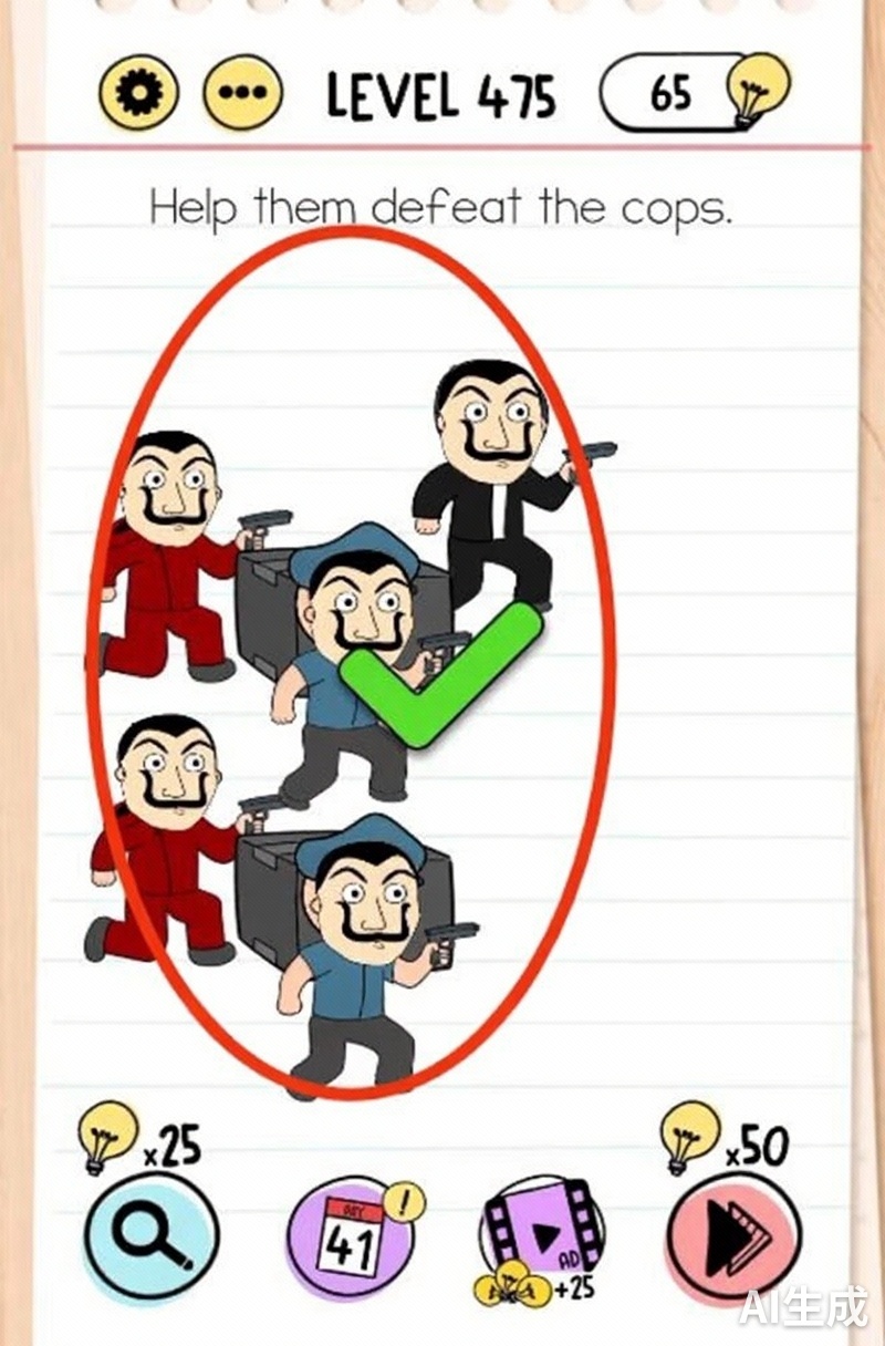 Drag the masks from the thief’s face onto the policemen’s faces.