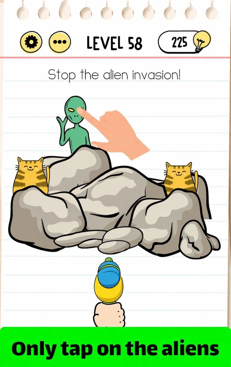 This level challenges your problem-solving skills with a unique puzzle. Take your time to observe all elements on the screen. Sometimes the solution requires thinking outside the box or interacting with objects in unexpected ways. If you're stuck, try different approaches and don't be afraid to experiment with the interface.