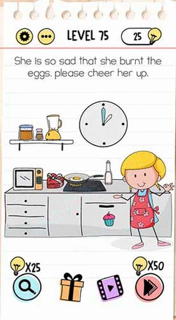 Turn back the time by moving the hour needle at 2. You will see the food that she burned will unexpectedly not be burned anymore.