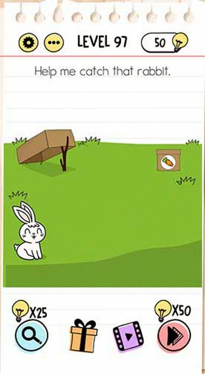 Drag the rabbit trap near the rabbit. Then tap on the box of carrots to catch the rabbit.