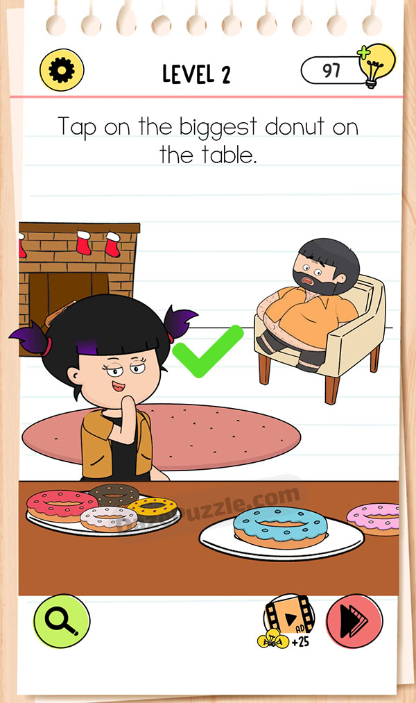 Tap on the biggest donut on the table