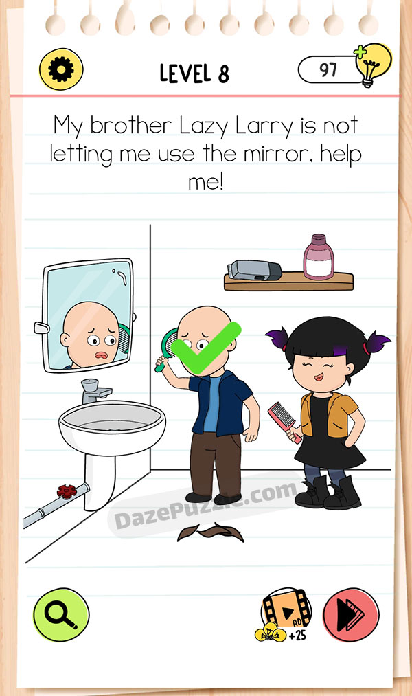 My brother Lazy Larry is not letting me use the mirror